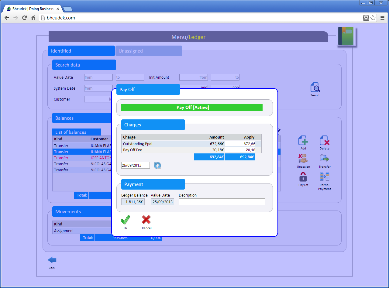 - Full loan life-cycle: installments, bounces, partial payments, collection, charge-off, etc.
